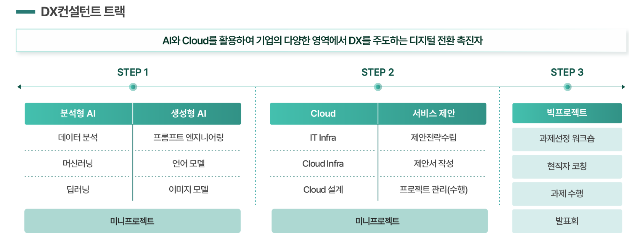 우리나라에 부트캠프가 정말 많지만 DX 컨설턴트 트랙은 KT가 유일하다는 점에서 굉장한 메리트를 느꼈어요.