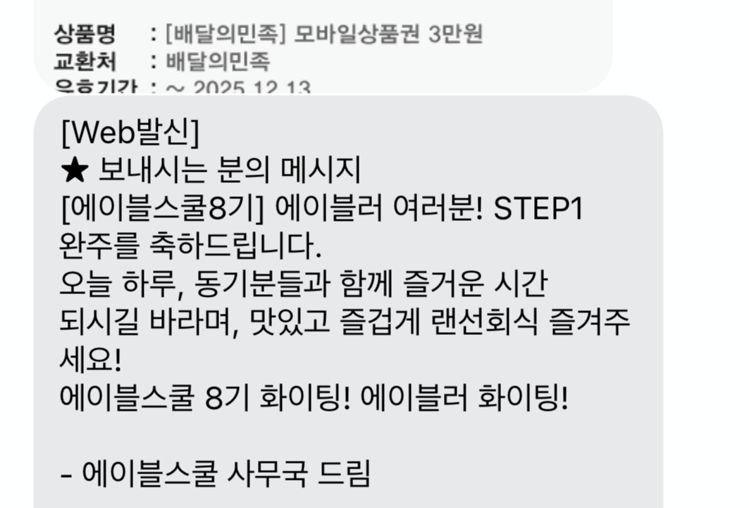 step 1 끝났다고 배민 상품권 3만원이랑 스탠리 텀블러 주는 부캠 어떤데......